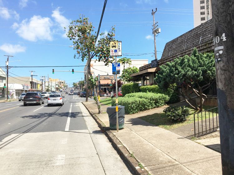 The nearest stop to popular gourmet spots like Mud Hen Water, Brew'd Craft Pub, and Brick Fire Tavern. Look for the HiBus sticker on the Trolley Stop sign and TheBus stop. Routes at this stop: KAHALA route