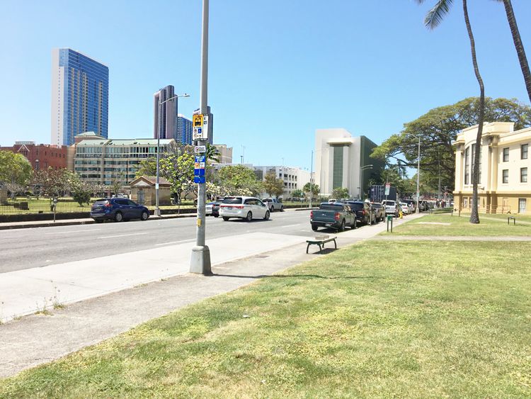 The nearest stop to iconic tourist spots such as the King Kamehameha I Statue, Iolani Palace, and Kawaiahao Church. Look for the HiBus sticker on the Trolley Stop sign and TheBus stop. Routes at this stop: DOWNTOWN route