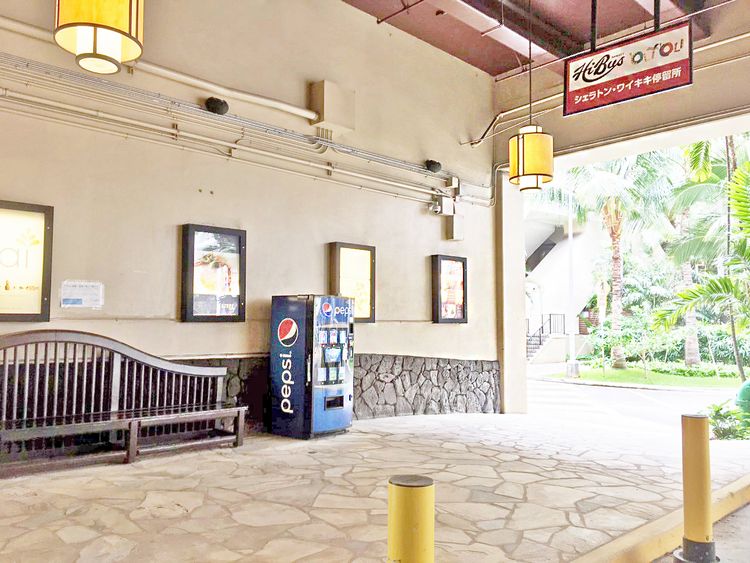 Located beyond the Aloha Landing in Sheraton Waikiki Beach Resort. Look for the HiBus sign hanging from the ceiling. Only stops for those heading towards Ala Moana Center. If the parking space is full, the vehicle will stop on the aisle side without entering the parking space. Please be cautious. Use this stop if heading towards Ala Moana from Outrigger Reef Waikiki Beach Resort, Halekulani Hotel, or Halepuna Waikiki.
