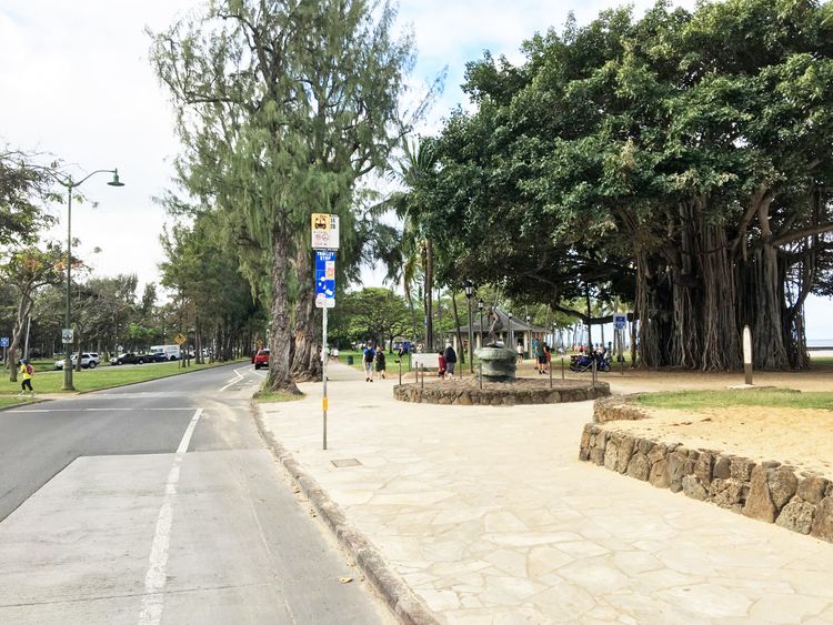 Located on the ocean side of Kalakaua Avenue (near Queen's Beach). Look for the HiBus sticker on the Trolley Stop sign. Routes at this stop: DIAMOAND HEAD route